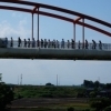 赤い水管橋とピンクのコスモスのコラボを見に来ませんか?