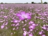 土手の左奥には一面紫色のじゅうたんが(麦なでしこ畑)