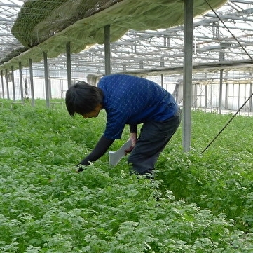 ハウスで作業をする坂本さん