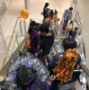 エスカレーターで仮装行列が下ります。