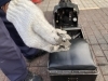 最初に見えてきたのは、消化器コーナー。消火器を使って的あて体験ができます。