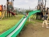 遊具は、基本はすべり台ですが、すべり台も3種類あり、グラグラするようなハシゴがあったり、つり橋があったりと、幅広い年齢の子どもが楽しめるようなつくりになっています。