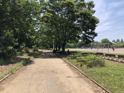 遊具の横の広場も自転車練習にピッタリです(地面の固さは注意)