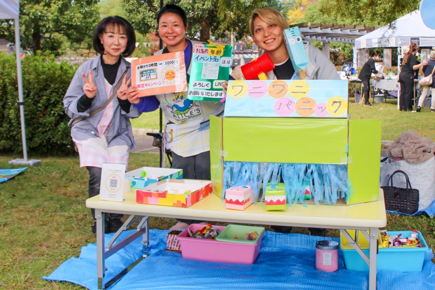 鴻巣市で導入しているコミュニティアプリ「まちのコイン」を使った宝探しイベントや体験企画を実施しました。会場で集めたポイントは、かわいい布製バッグやガチャガチャ体験などに交換できるため、子どもたちに大人気! みんな夢中になってポイントを集めていました。