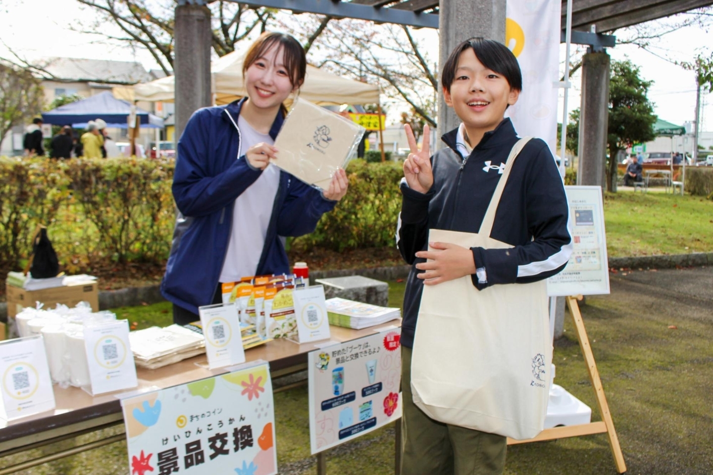 まちのコインのポイントを布製バッグと交換した小学生