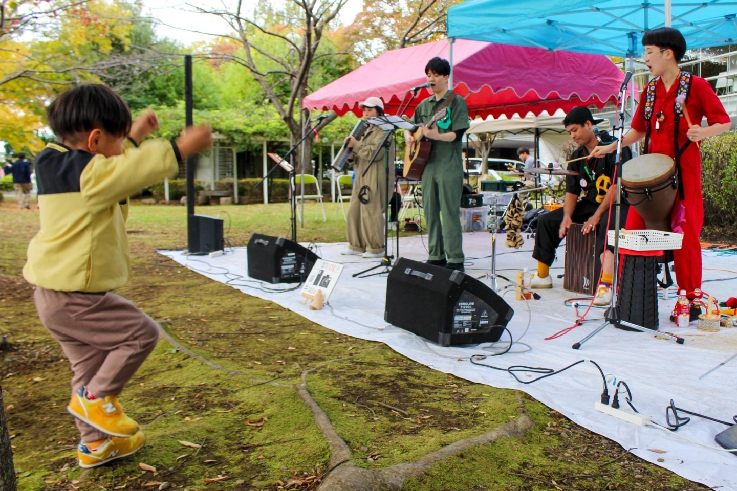 音楽ライブやキッチンカーも登場した会場。芝生でのんびり過ごす親子連れなどでにぎわいました。