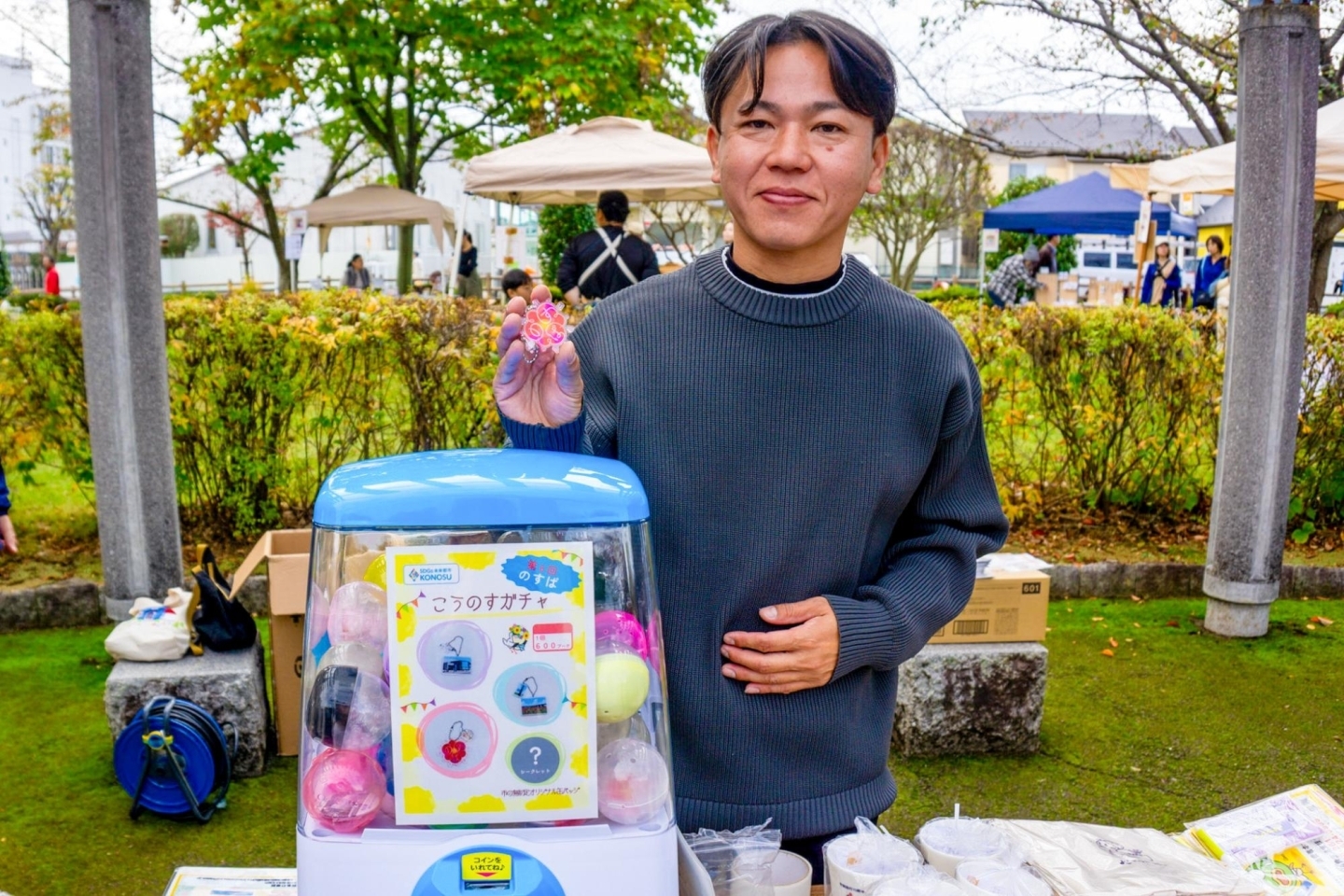 ガチャガチャのキーホルダーの制作は鴻巣ガチャでおなじみの「株式会社KCP」(代表の小林さん)