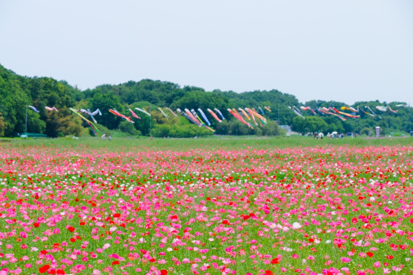 鯉のぼりが泳ぐ、以前のこうのす花まつり馬室会場の様子(鴻巣市提供)