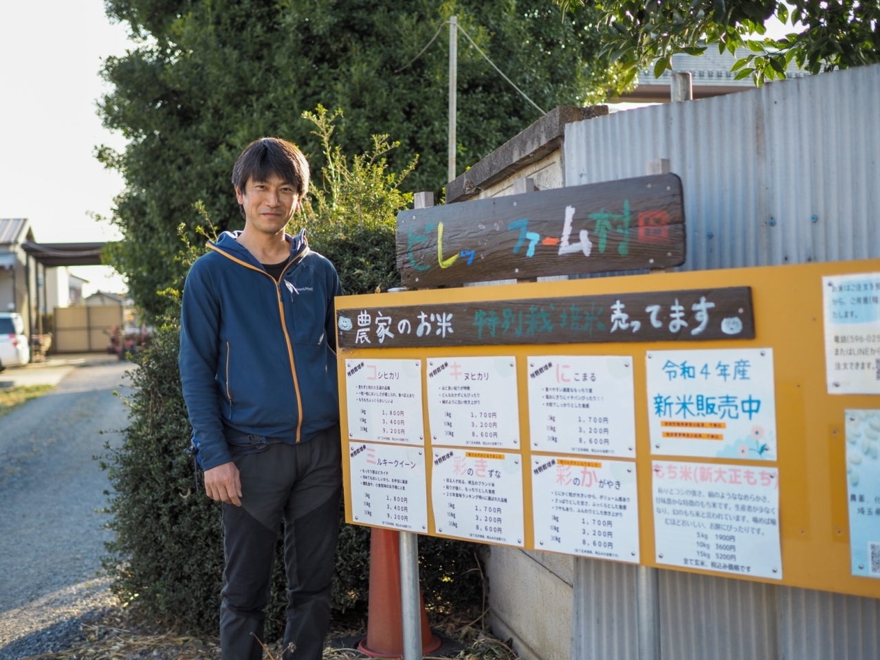 埼玉県認証 特別栽培農産物*のお米(こうのとり伝説米*、コシヒカリ、キヌヒカリ、ミルキークイーン、にこまる、彩のきずな、彩のかがやき)づくりを手掛ける村田さん。