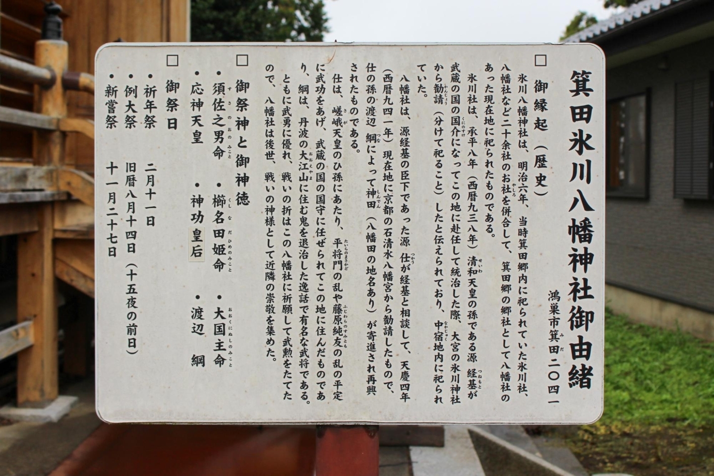 氷川八幡神社の由緒書には、同神社が渡辺綱の寄進で再興されたとあります