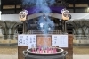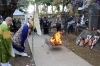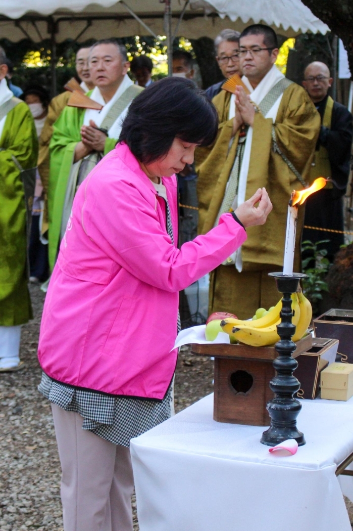 大勢の僧侶が人形塚の前で念仏を唱え、人形に感謝し、魂を抜きます