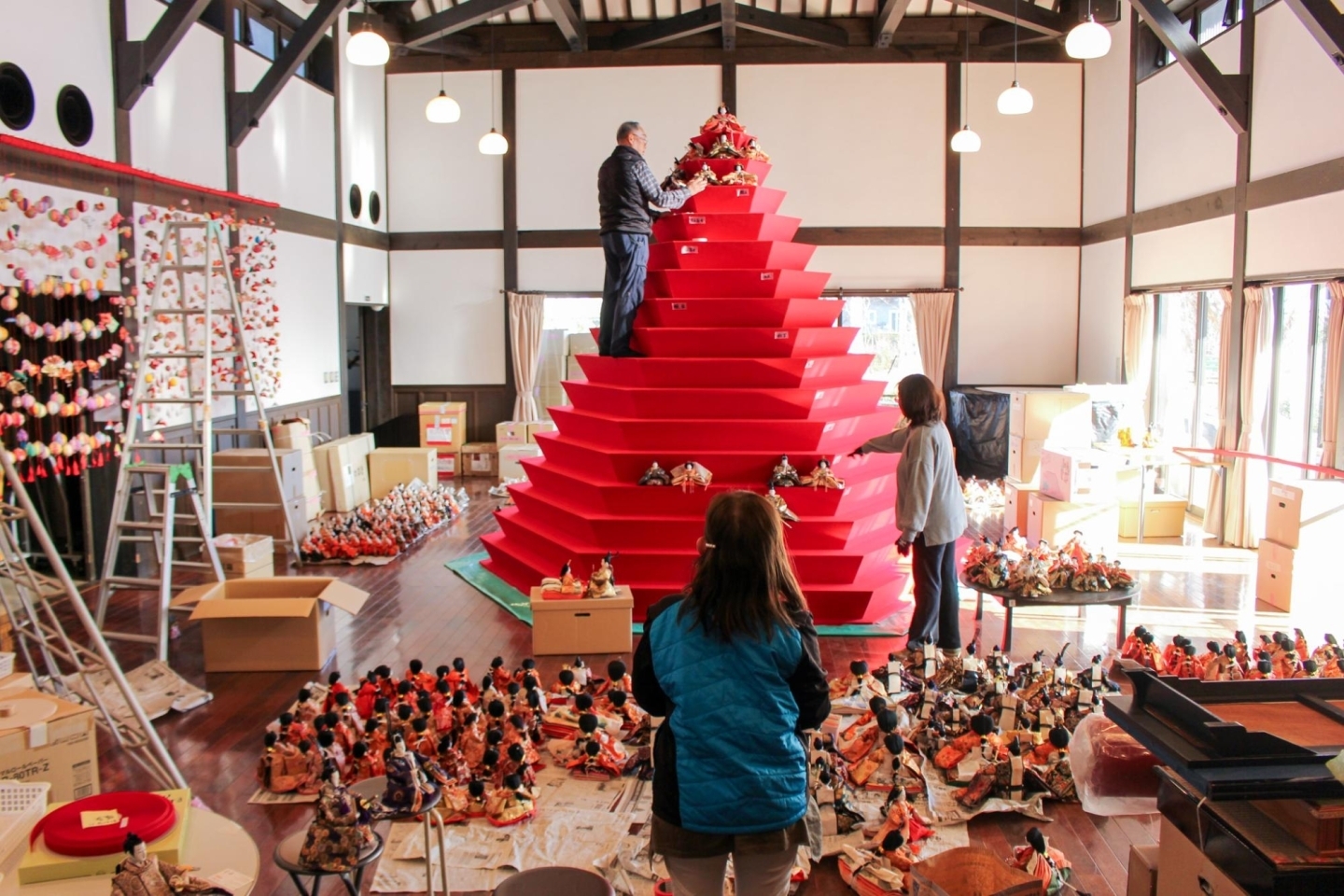 2月4日に館長らスタッフが人形を、一体一体、丁寧に設置していました。