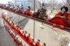 緋毛氈(ひもうせん)に鎮座するひな人形たち