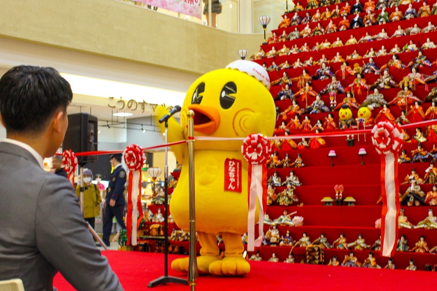 エルミこうのす1階セントラルコ―トに飾られた、31段、高さ約7mの日本一高いピラミッドひな壇(日本一ネット認定)。