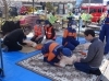消防団のお兄さんと一緒に消火活動。これも貴重な体験!