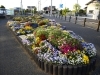 さまざまな花が咲きそろう三谷橋の花壇。ベンチに座って眺めよう