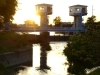 元荒川から西裏用水路に水を取り入れるための堰。もうすぐ日が沈む