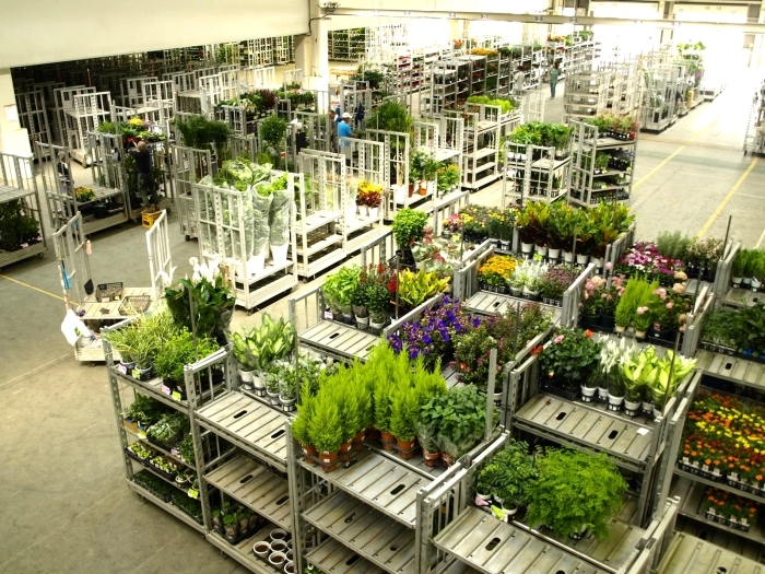 ちょっと失礼してハウス内をのぞくと、一面に花の苗